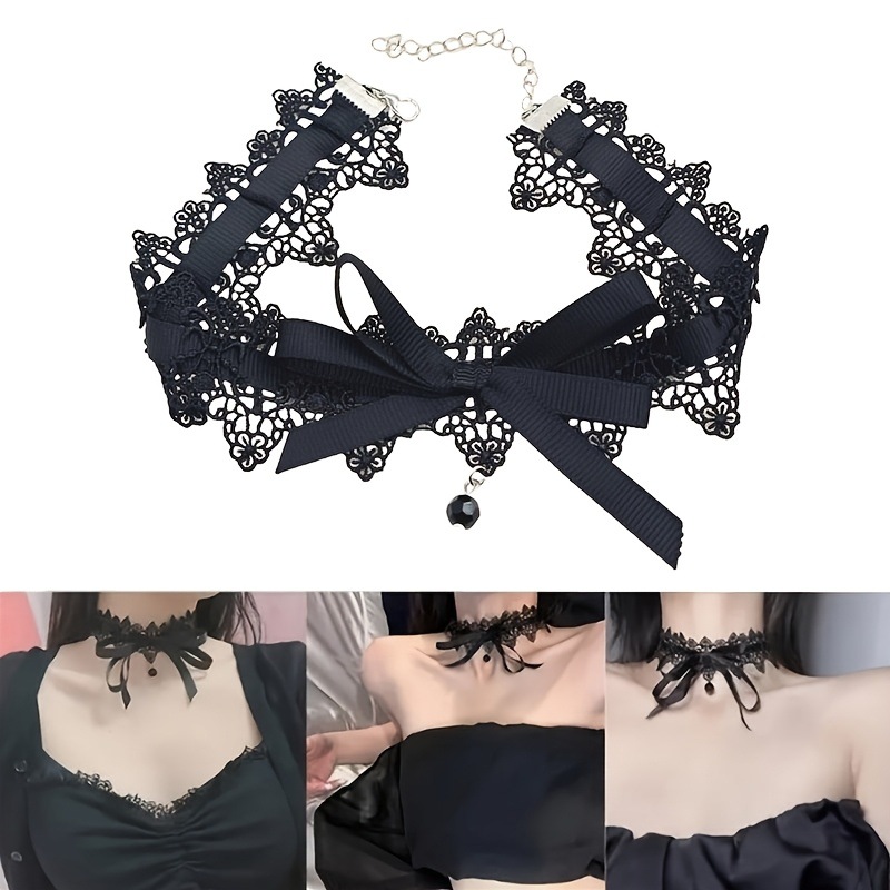 European and American Cross-border Black Bow Lace Hollow Strap Necklace Women's Neck Strap Short Collar Sexy Choker