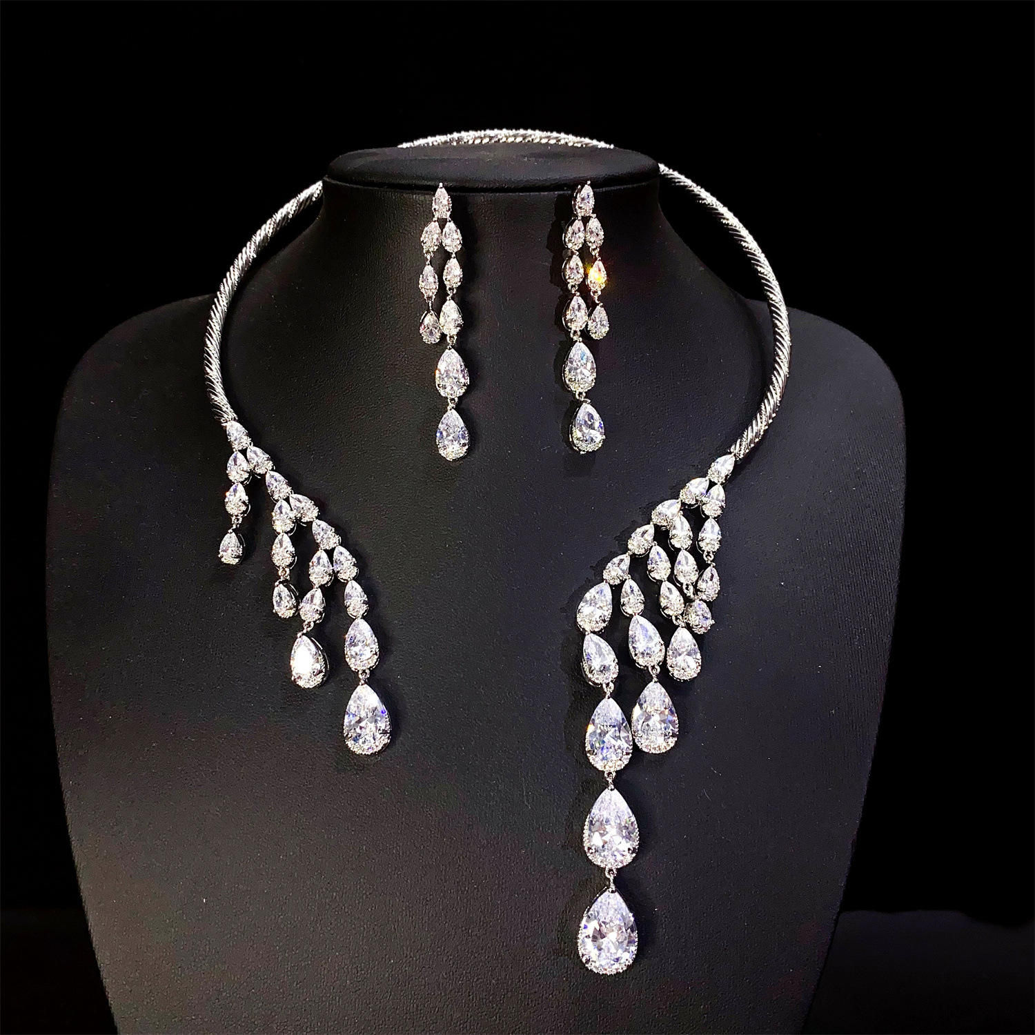 South Korea European and American style jewelry exaggerated zircon tassel collar earrings jewelry suit peacock sexy Internet red