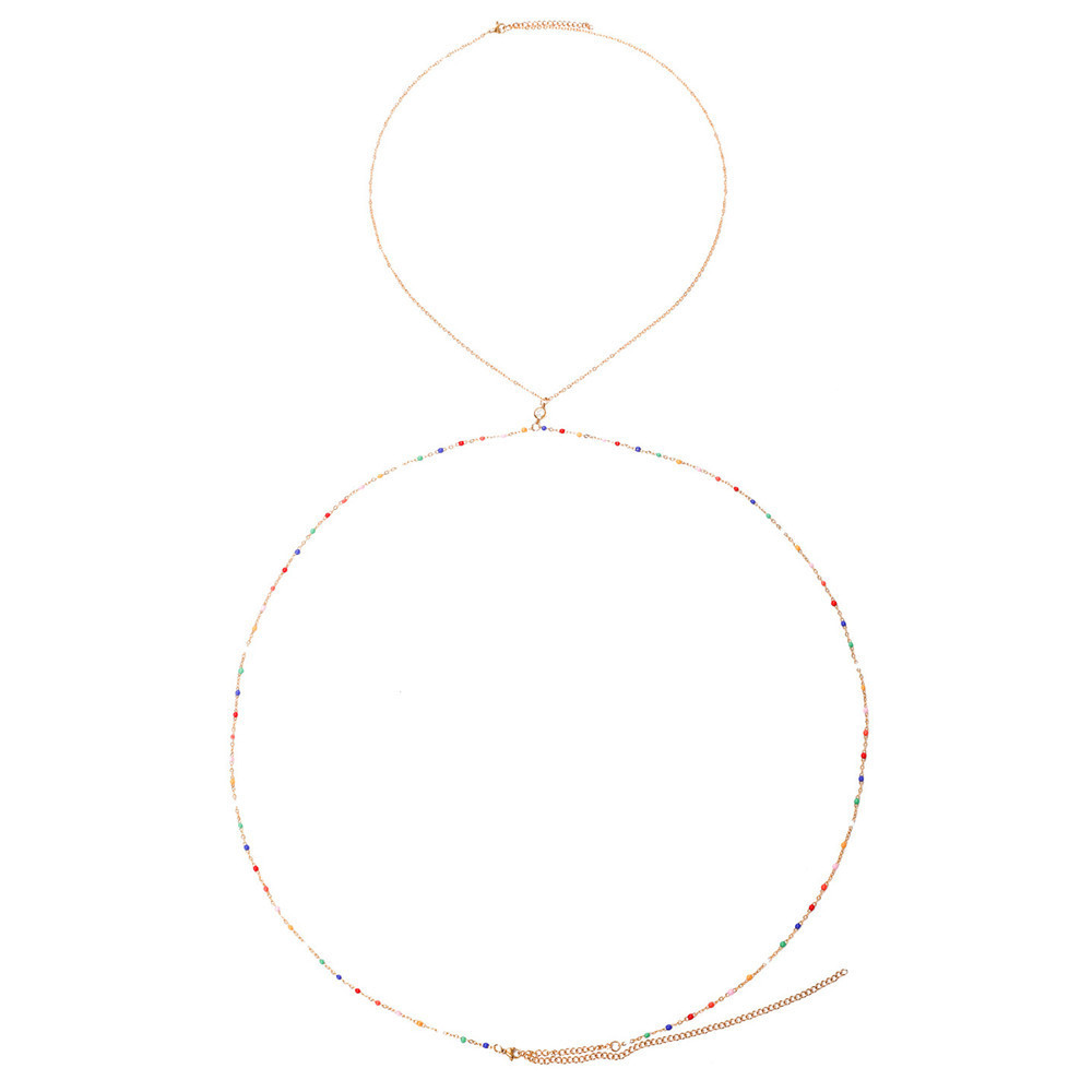 European and American jewelry fashion sexy stainless steel colored bead chain crystal pendant charm beach handmade body chain