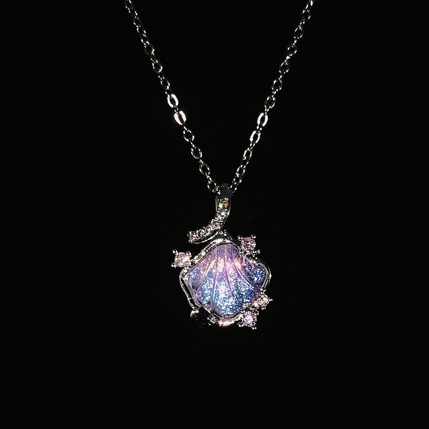 [Mermaid Temptation] Dreamy Fine Glittering Purple Shell Pendant Necklace Design Accessible Luxury Colorful High-End Women's Necklace