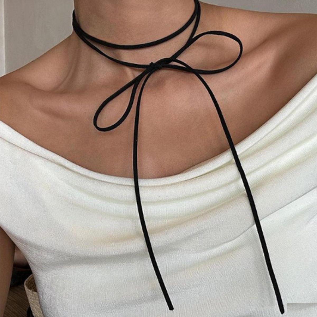 European and American Sexy Lace-Up Black Velvet Bow Collar Female Hot Girl Clavicle Chain Neck Strap Necklace Wholesale