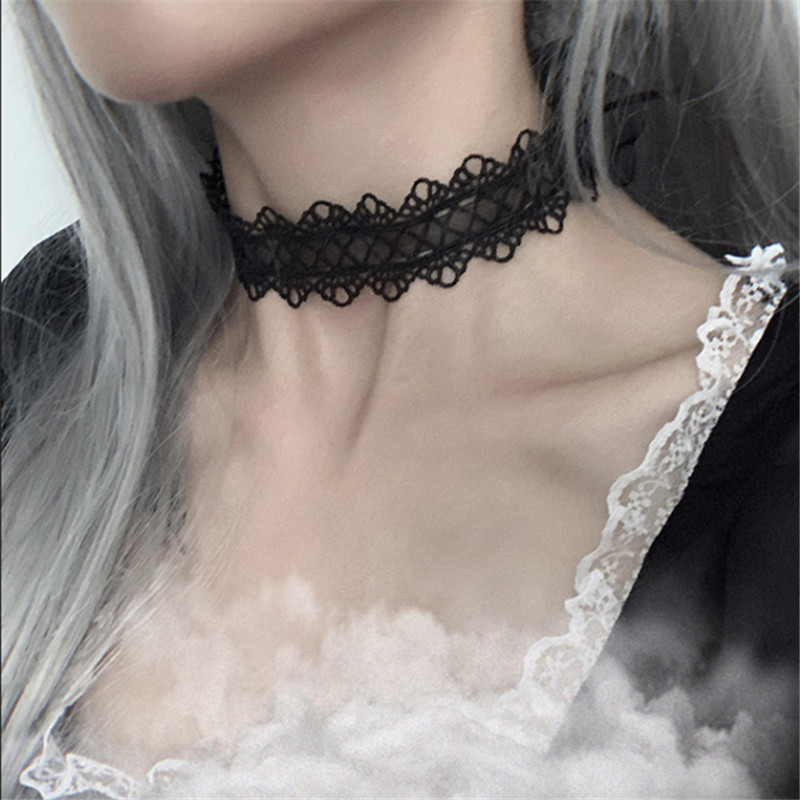 Women's Harajuku Choker Jewelry Lolita Black Neck Collar Necklace Lingerie Accessory Lace Strap Wholesale Clavicle Chain