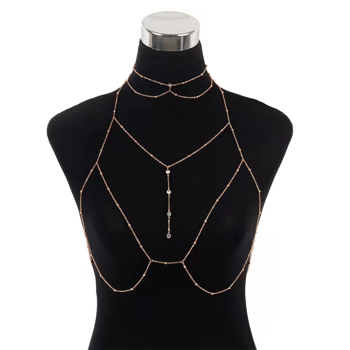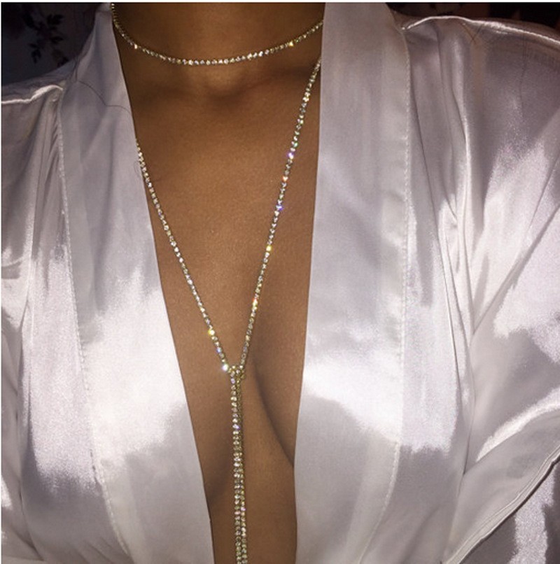 European and American Cross-Border Chain Body Fashion Sexy Multi-Layer Accessories Beach Simple Jewelry Chest Chain Neck Chain Hot Selling Rhinestones