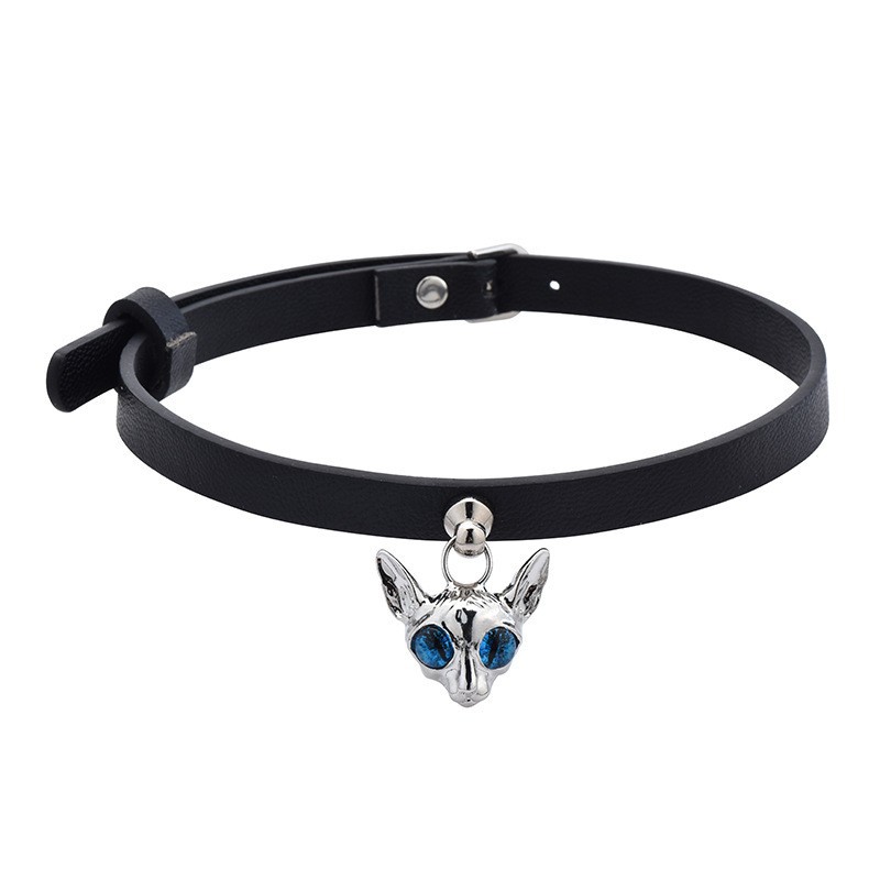 Light luxury niche trendy sheepskin cat head collar female cat head pendant collar sexy chocker female neck strap wholesale