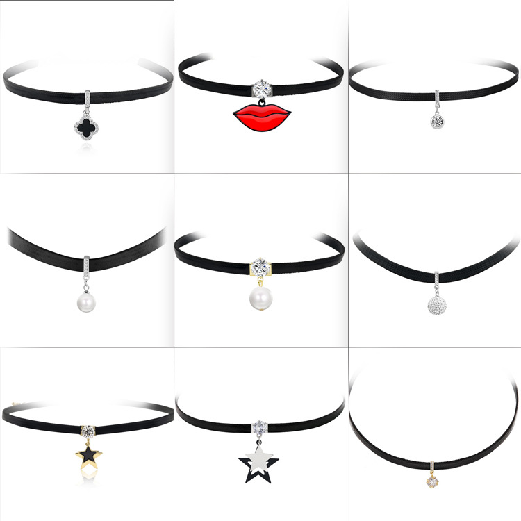New Harajuku vintage velvet strap leather neckband collar cross-border popular exquisite necklace clavicle chain accessories fashion wholesale