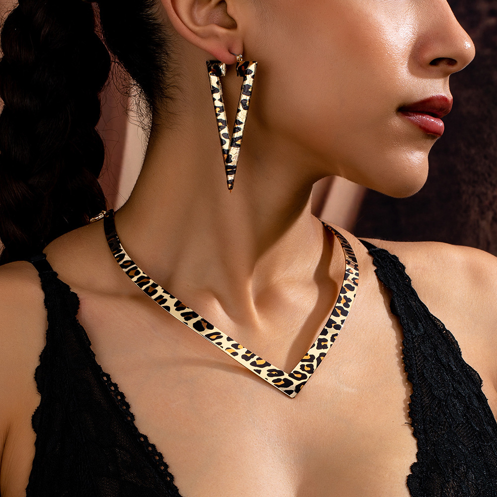 Europe and the United States cross-border trend new geometric V collar earrings suit exaggerated sexy personality fashion jewelry suit