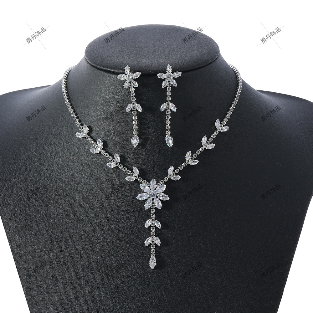 European and American Sexy Elegant Dinner Dress Wedding Dress Brilliant Diamond Zircon Flower Tassel Jewelry suit Ladies Jewelry