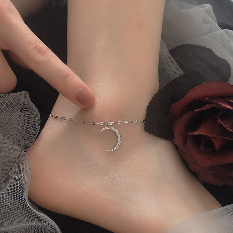 Korean-style Internet Celebrity Simple s925 Sterling Silver Wholesale Niche Design Moon Anklet Female Sexy Personalized Small Fresh Anklet