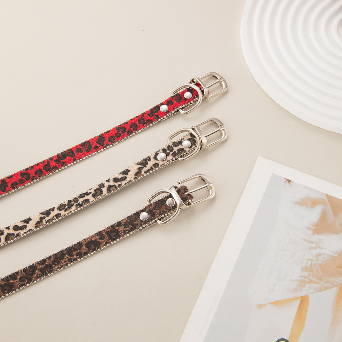 Sexy Hot Girl Style Leopard Print Belt Buckle Collar Women's Niche Punk Subculture Design Trendy Fashion Accessories
