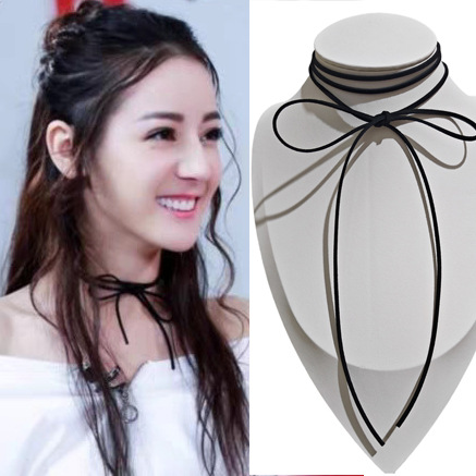 Dilireba's Same Sexy Lace-Up Velvet Bow Collar Female Sexy Clavicle Chain Neck Strap Necklace