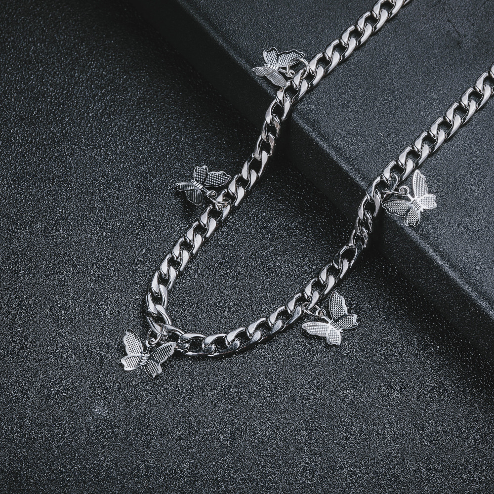 ins Net red with niche hip hop fashion European and American butterfly clavicle chain multi pendant trend sexy titanium steel wholesale