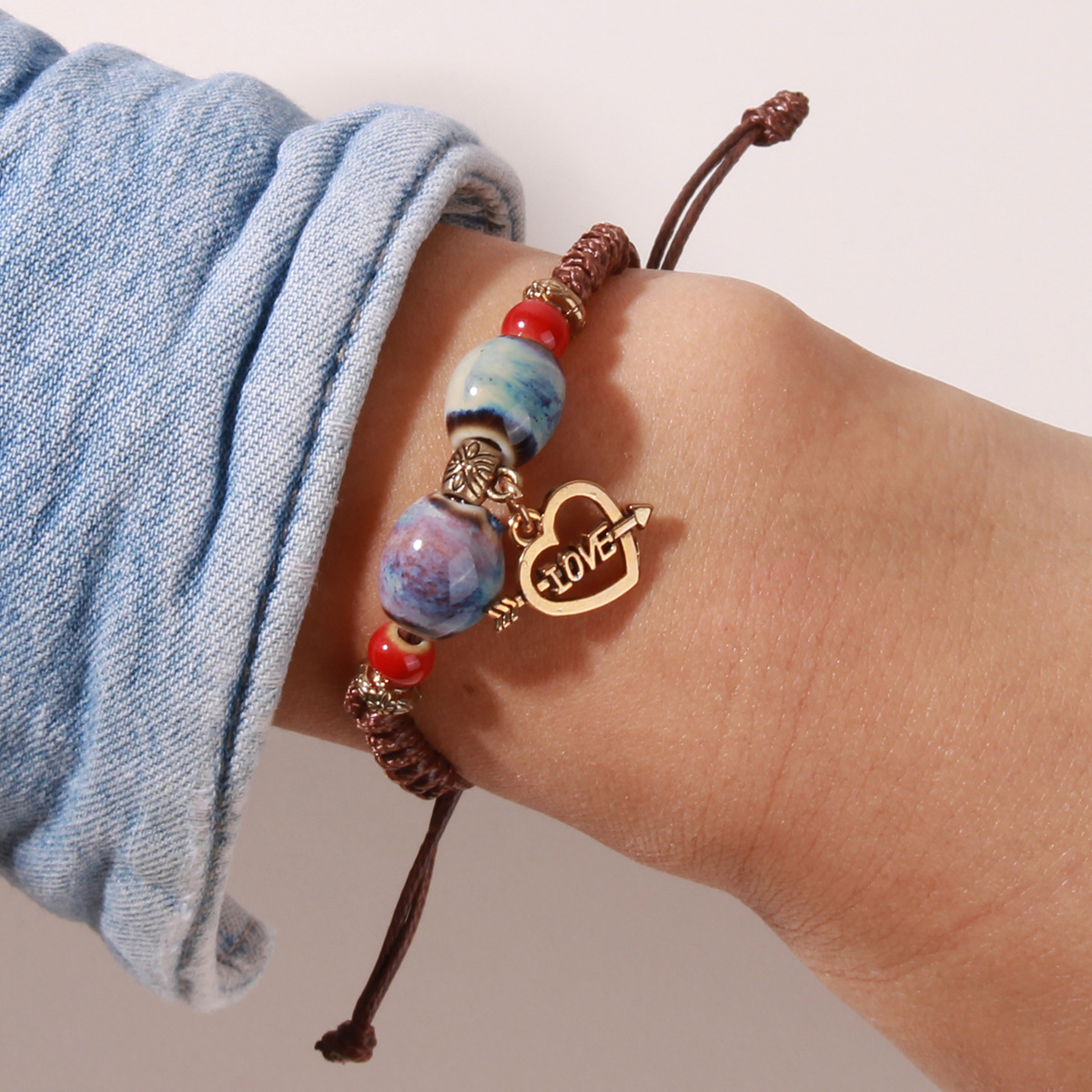 BL323 Li Meng jewelry manufacturers National Style fashion woven heart-shaped bracelet new European and American wax line letter jewelry