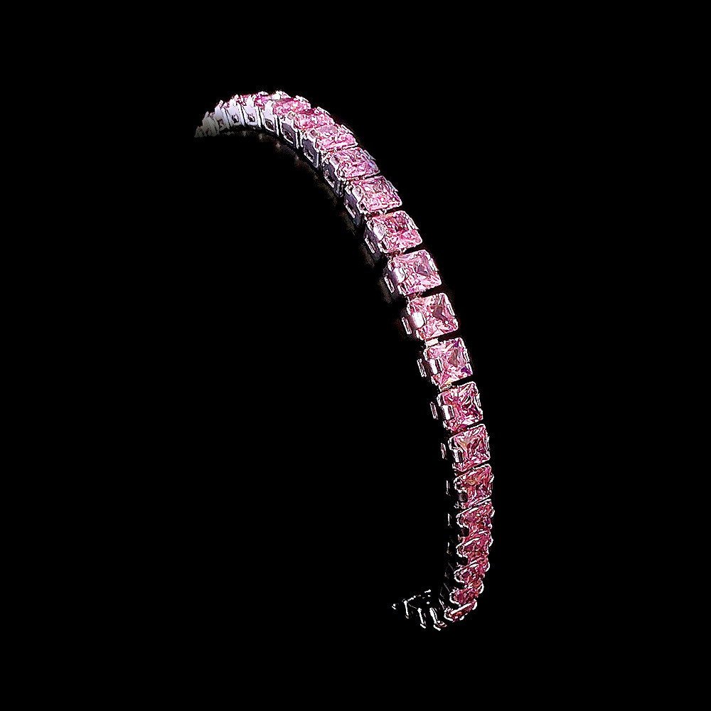 Fashion Design Exclusive Your Pink Temptation Single Row Square Small Grain Zircon Full Diamond Bracelet Women Send Girlfriend