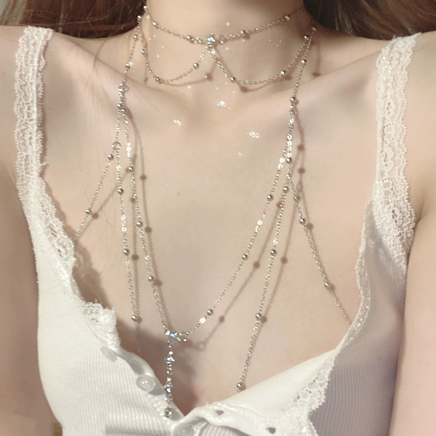 Sexy Chest Chain Advanced Flash Diamond Body Chain Bikini Explosive Clavicle Chain Women's Photography Accessories Neckchain Pure Desire