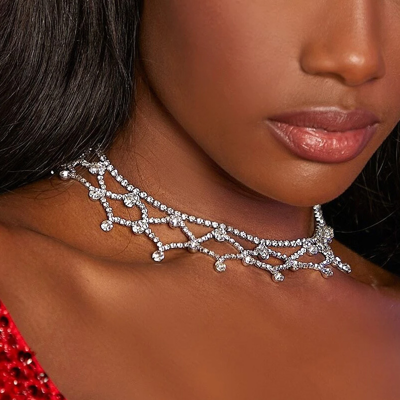 Fashionable all-match hollow diamond necklace fashionable sexy rhinestone water drop necklace European and American cross-border jewelry choker