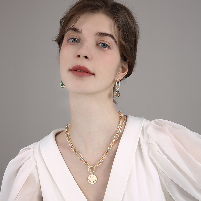 Trendy Smiley Face Collarbone Necklace in Ins Style, 2024 New Internet Celebrity Fashion Necklace, Sexy and Elegant Neck Chain
