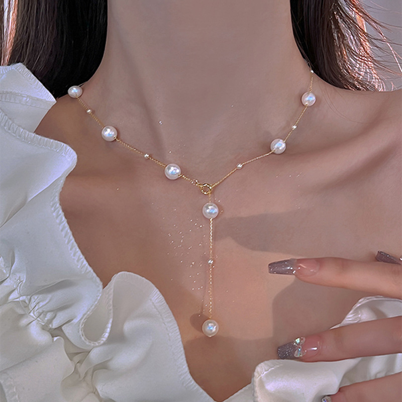 Gypsophila ~ French sexy Y word tassel pearl necklace temperament short neck chain design sense clavicle chain women's spring and summer