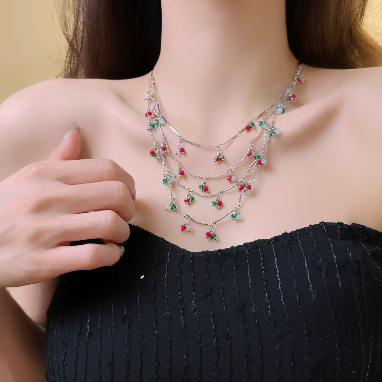 New Chinese Color Round Beaded Tassel Sexy Clavicle Chain Women's Multi-layer Layered Necklace Accessories 2025 New Explosions