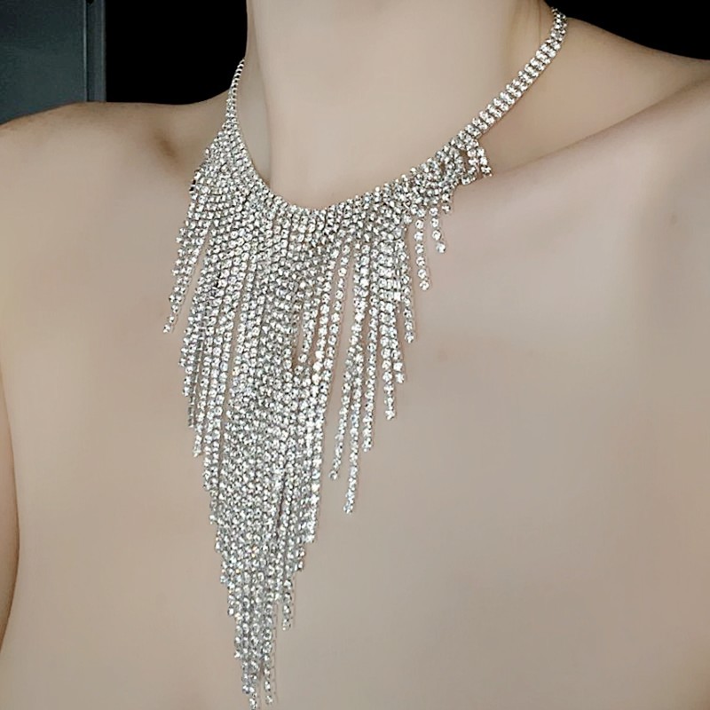 Cross-Border European and American Sexy Exaggerated Beach Casual Body Clothing Chain Necklace Flash Diamond Pendant Tassel Necklace Chest Chain