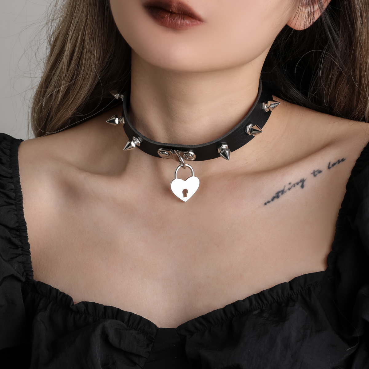 European and American cross-border Fashion sweet cool sexy hot girl style heart lock pendant necklace female personality punk hip hop rivet necklace