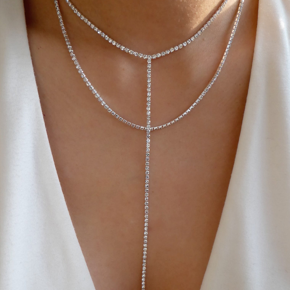 New flash diamond water wave necklace South Korea temperament neck chain sexy long tassel clavicle chain choker neck short chain