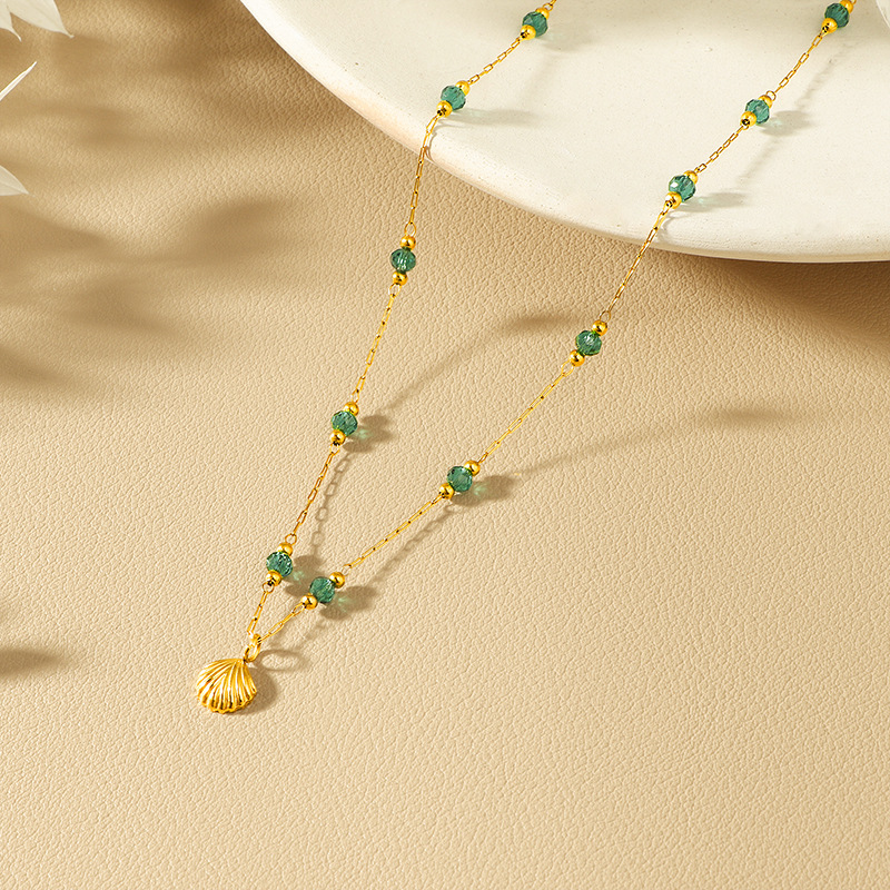 Vintage Emerald Diamond Shell Necklace Niche Design Unique High-end Sense Sexy Clavicle Chain Unfading Titanium Steel Women