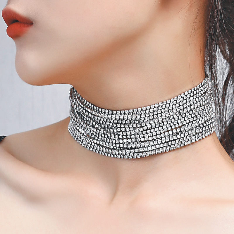 Cross-border simple fashion multi-layer claw chain rhinestone necklace sexy prom party dress neck accessories necklace