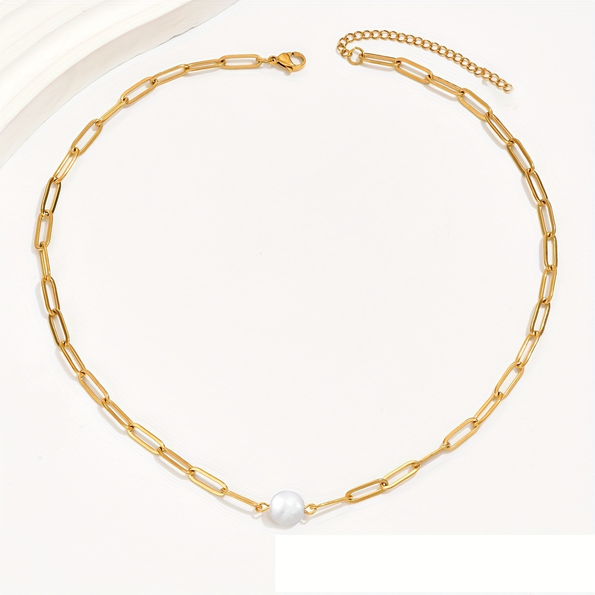 Cross-border Explosions European and American Simple Sexy Ladies Pearlkin Chain Necklace Stainless Steel 18K Gold Clavicle Chain