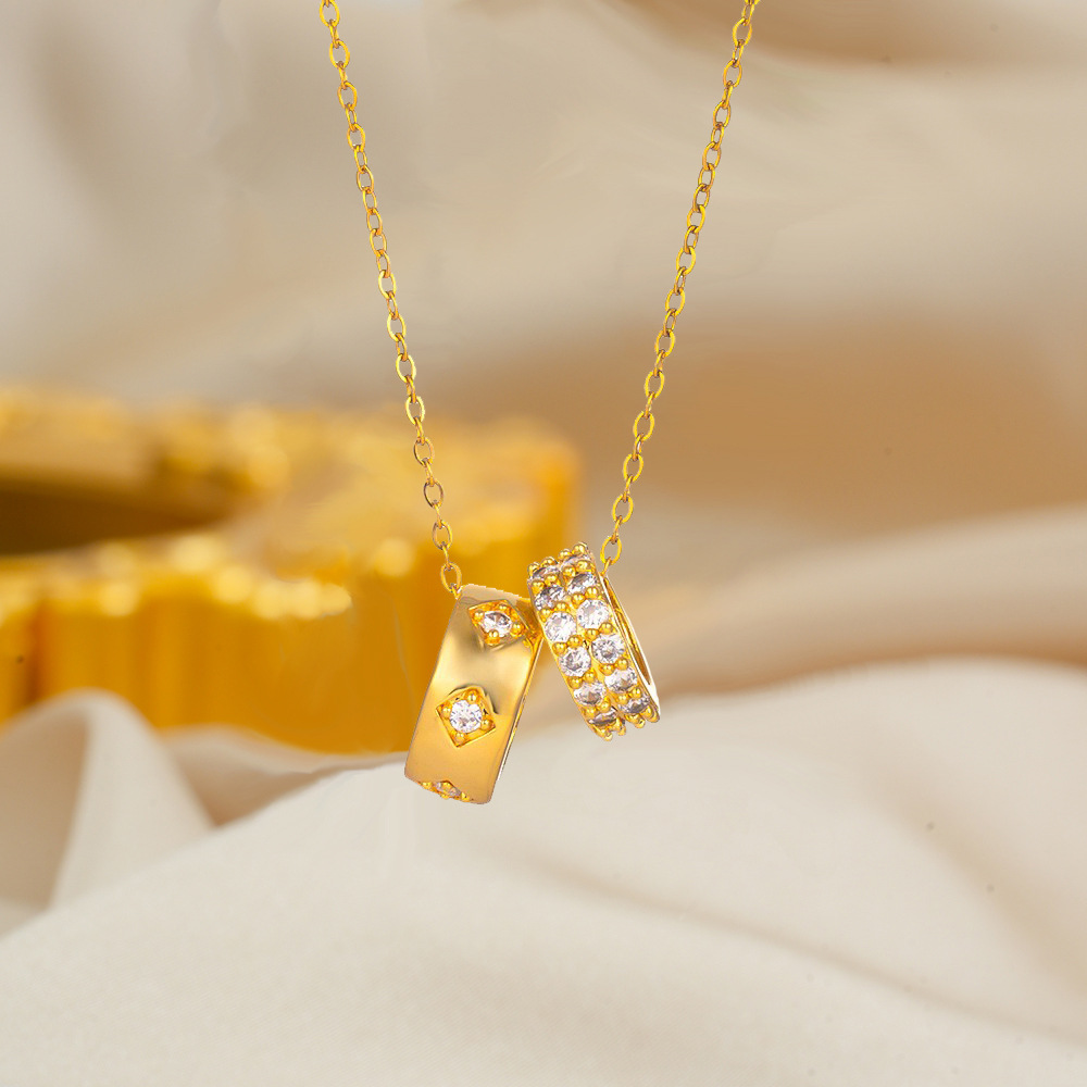 [Titanium Steel] Sexy Double Ring Full Diamond Large Waist Necklace Clavicle Chain Small Fresh Cute All-match Fashionable Necklace Chain