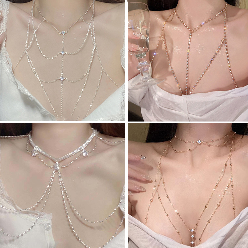 New Diamond Geometric Chain Necklace Chest Chain Body Chain European and American Fashion Shoulder Chain Sexy Bikini Accessories