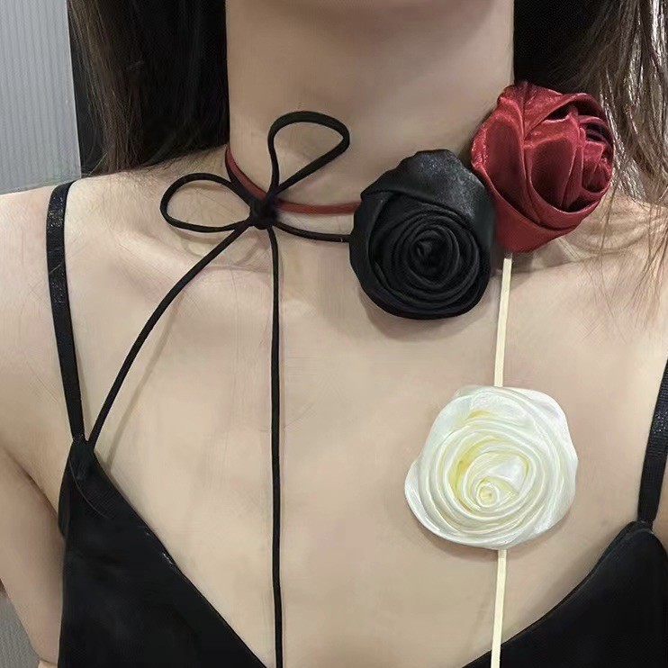Niche retro pure desire style pure desire rose choker collar wrist flower silk necklace sexy waist rope strap
