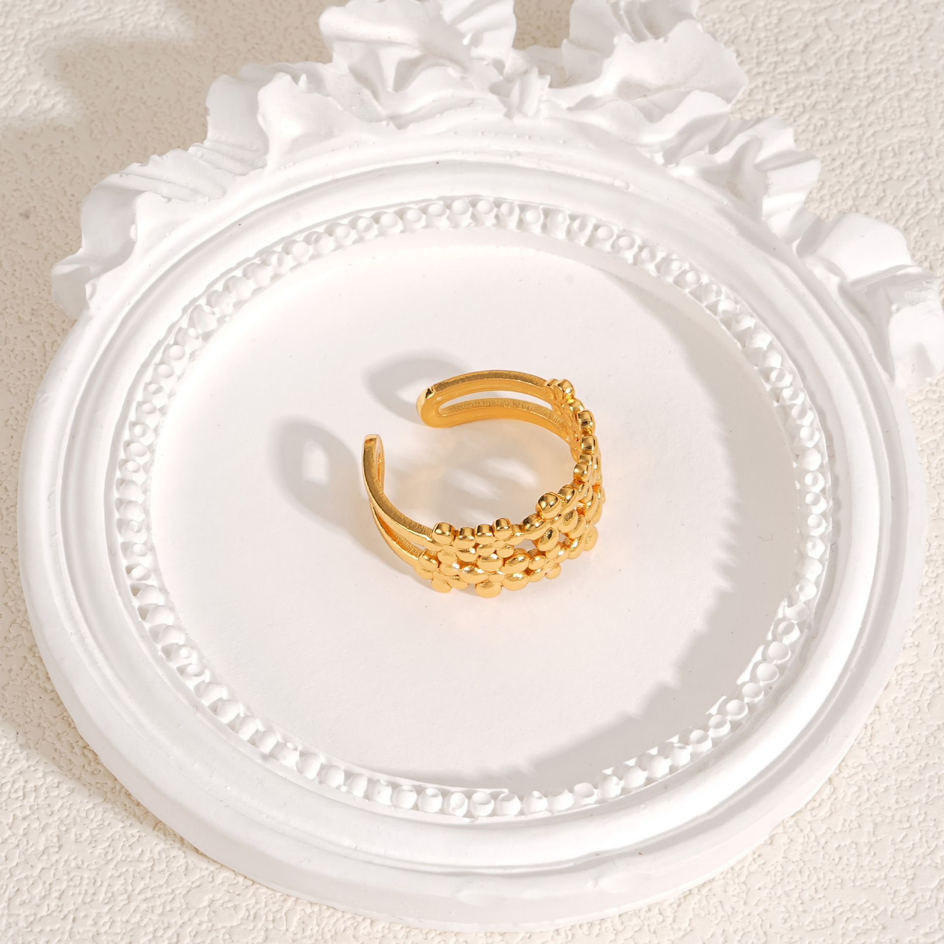 European and American Personalized Open Stainless Steel Ring for Women, Non-Fading, Hollow Flower Splicing, Sexy Titanium Steel Versatile Ring for Women