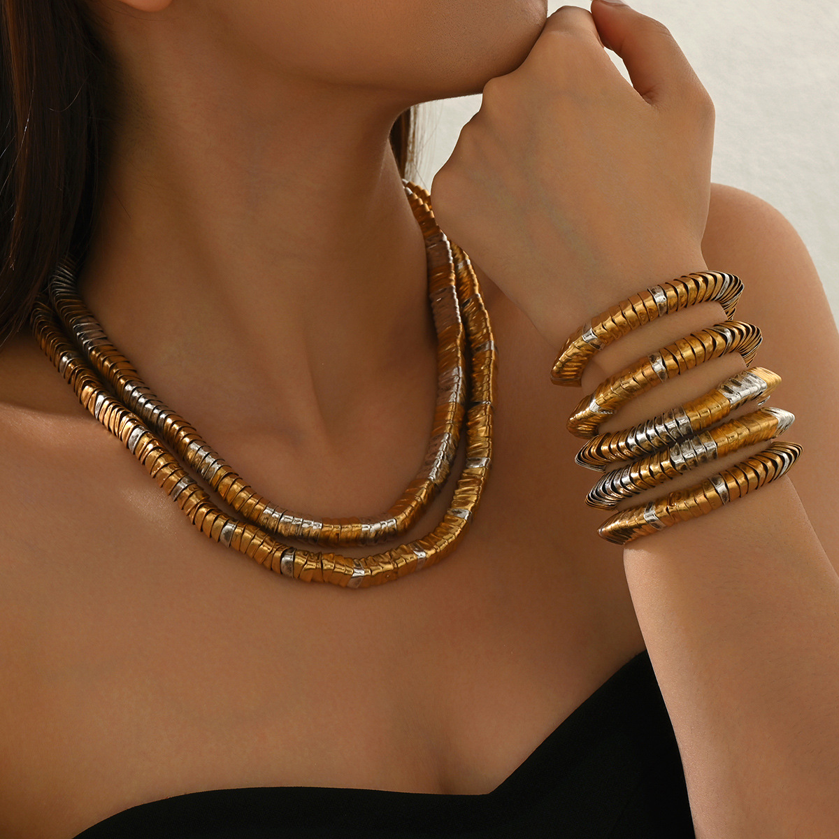 Za New European and American Cross-Border Triangle Hat Beaded Imitation Snake Chain Elastic Rope Bracelet Necklace Set Sexy Fashion Accessible Luxury