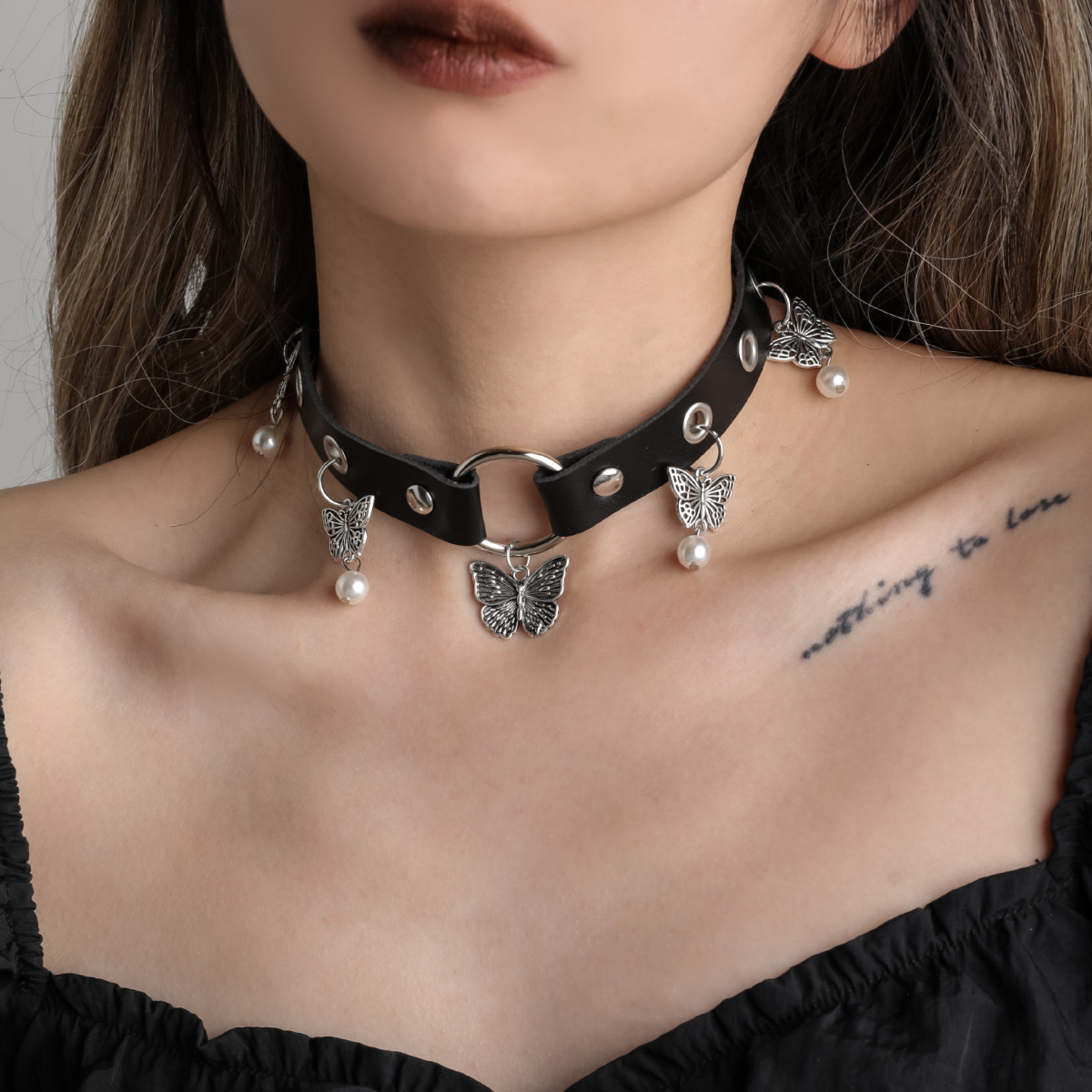 New fashion sweet cool sexy hot girl style butterfly pendant necklace female personality punk hip hop PU leather necklace wholesale