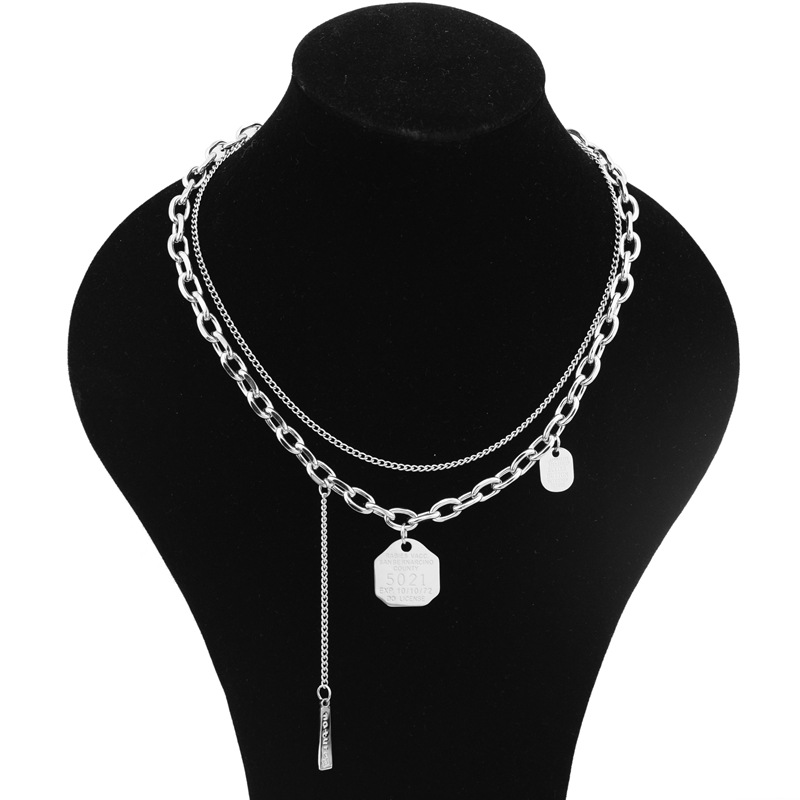 Hot Hot Letter Square Tassel Double Layer Necklace Stainless Steel Overlapping Two Layer Sexy Clavicle Chain