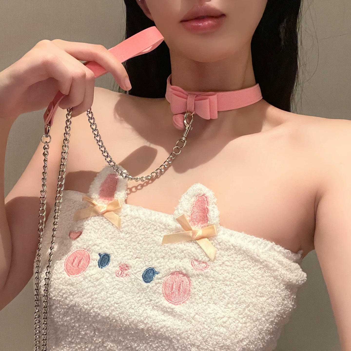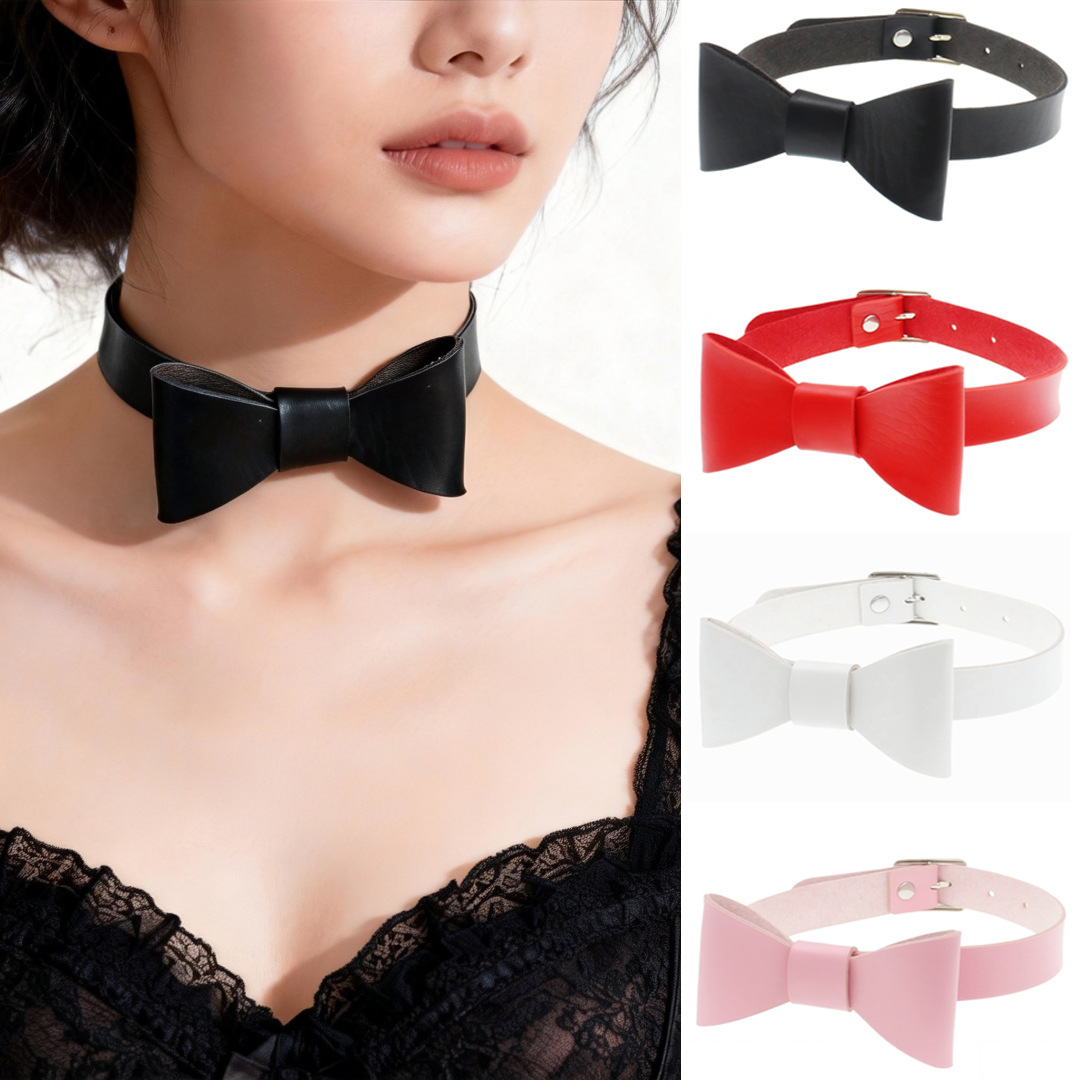 Eco-Friendly Pu Leather Cross-Border European and American Harajuku Punk Style Fashion Rock Sexy Bow Choker Sexy Nightclub Necklace