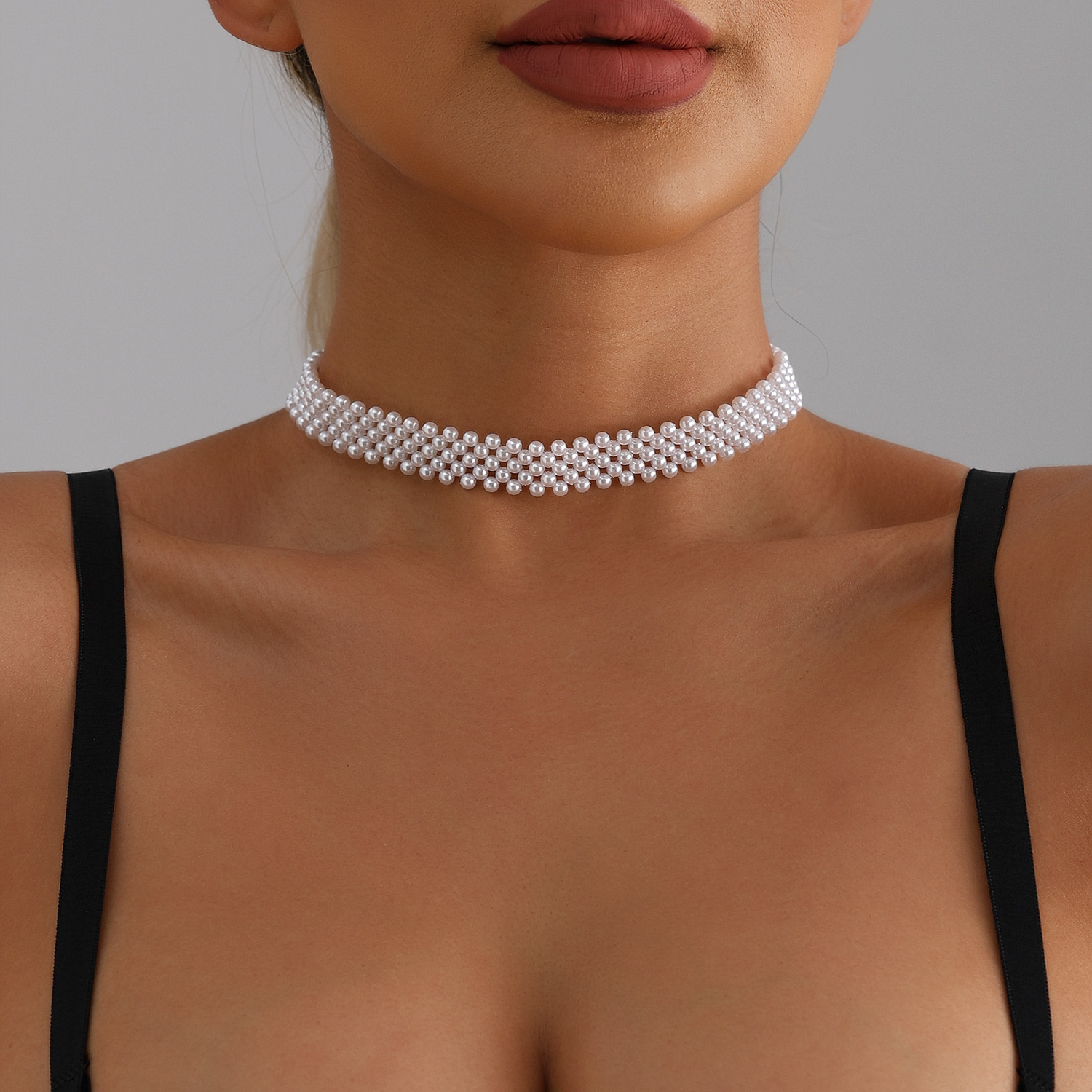 European and American Cross-Border Jewelry Ins Accessible Luxury High-End Style Multi-Row Pearl Braided Clavicle Chain Sexy Sexy Style Necklace for Women