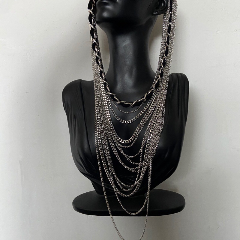 Fashion Spicy Girl Sexy Chain Multi-Layer Stacked Necklace Unique Exaggerated Personality Choker Niche Hip-Hop Collarbone Chain Trendy