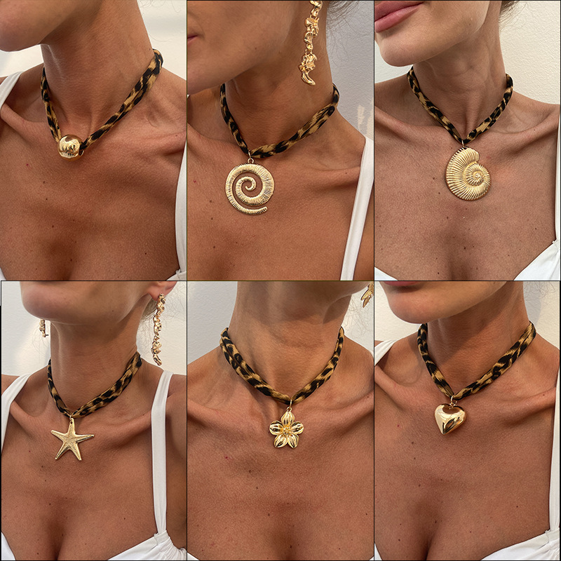 European and American Cross-Border Ocean Style Conch and Starfish Pendant Necklace Sexy Leopard Print Cotton Flower Heart Clavicle Necklace