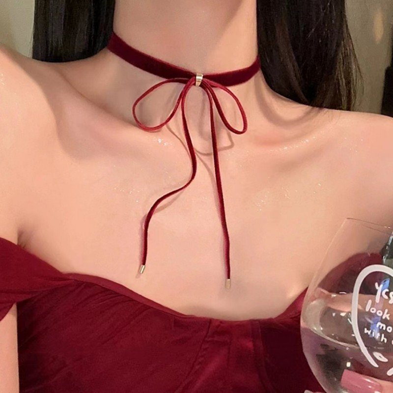 Sexy Hot girl pure desire style velvet bow tassel clavicle chain sweet girl feeling fresh necklace new fashion