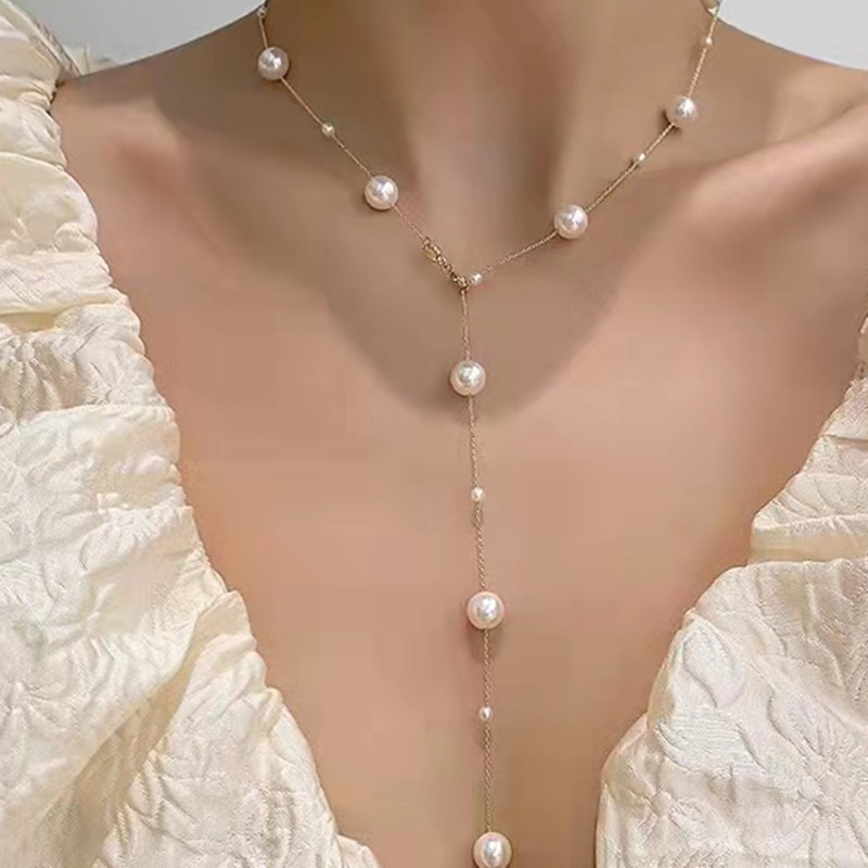 Sexy Pure Desire Style Pearl Tassel Clavicle Chain Fashion Simple High-end Sense Elegant Trend Various Wearing Necklace