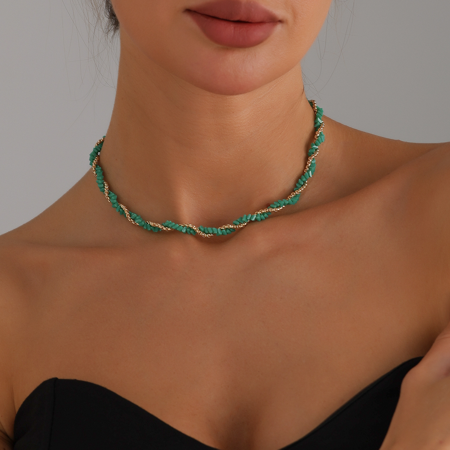 欧美跨境饰品玻璃水晶金蛇链缠绕项链女性感辣妹ins拼接风锁骨链
