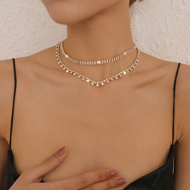 AliExpress new diamond multi-layer necklace European and American full diamond sexy necklace cross-border rhinestone accessories necklace