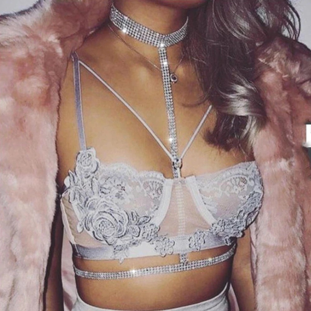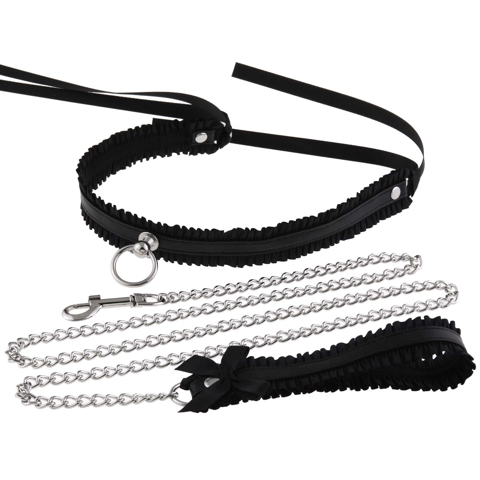 New Trendy Fashion Fairy Lace Versatile Layered Sexy Leather Collarbone Ring Chain Leash Necklace