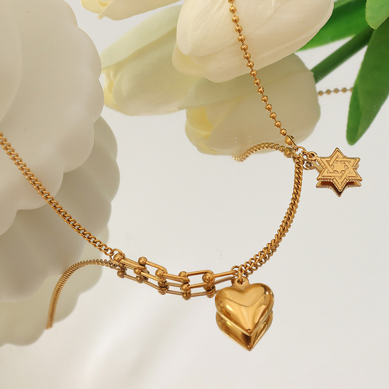 European and American cold sexy metal heavy industry texture five-pointed star peach heart sexy necklace online celebrity necklace girl P631