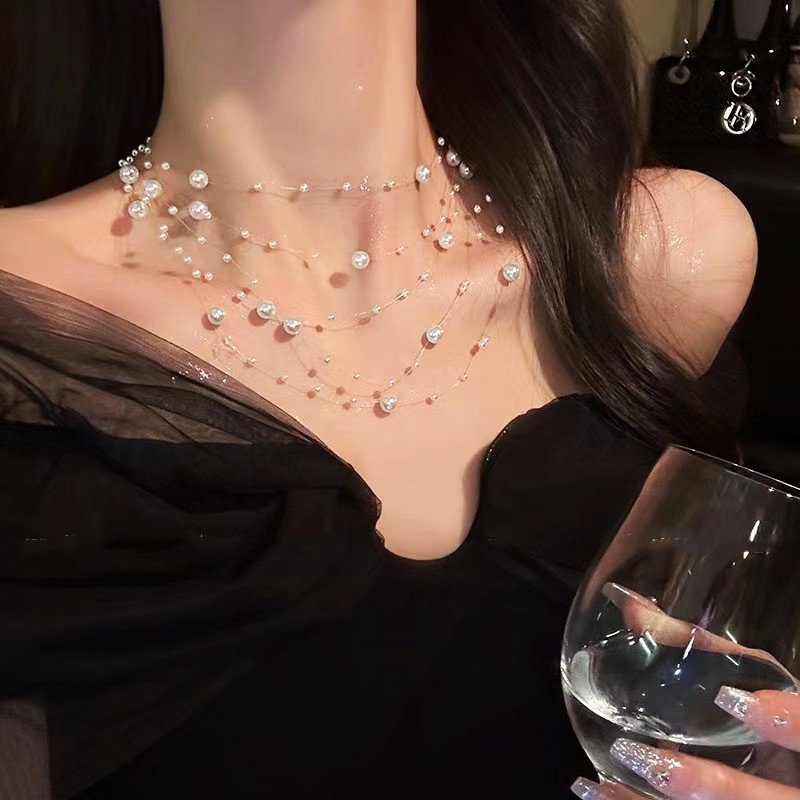 Fashion Elegant Sexy Elegant Pearl Multi-layer Clavicle Chain Sweet and Gentle Lady Light Luxury High-end Fashion Necklace