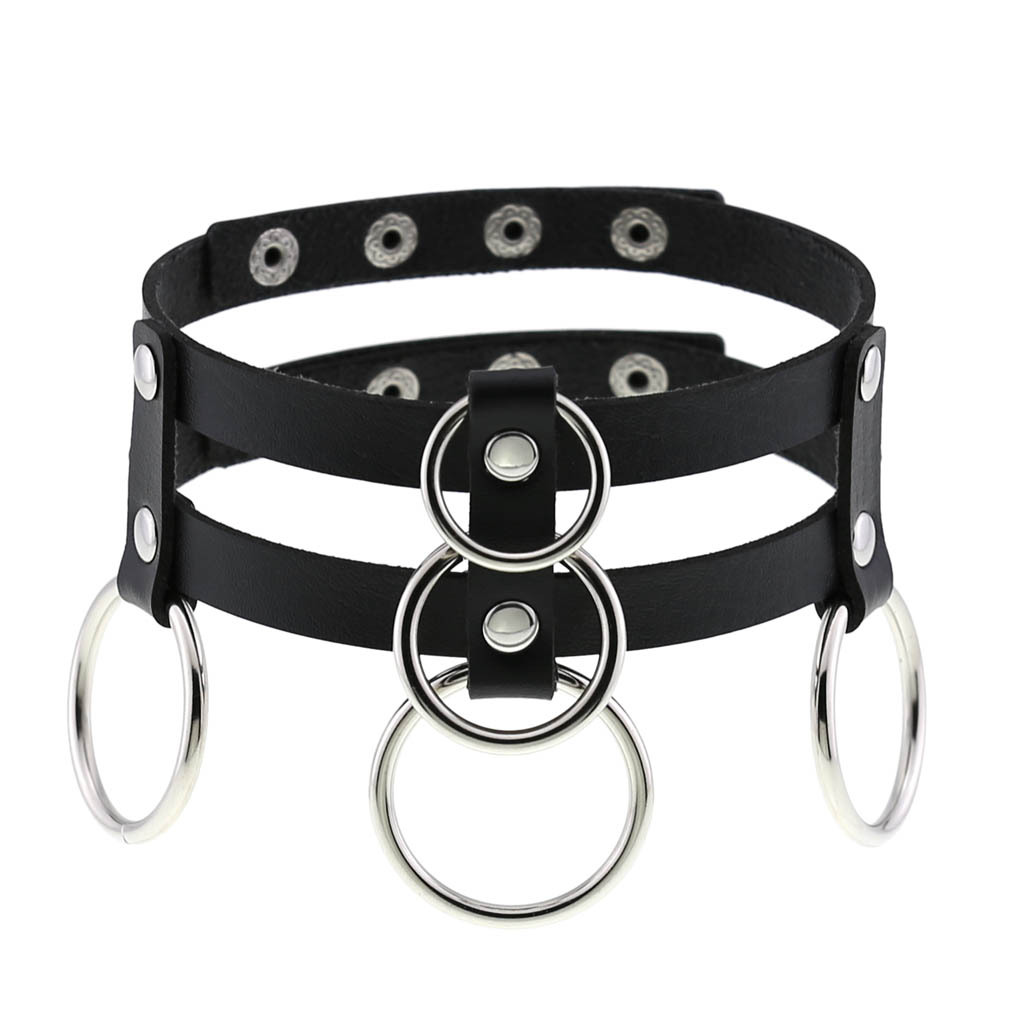 Cross-border source choker sexy leather double-line multi-loop Circle necklace personality hard girl collar chain clavicle chain
