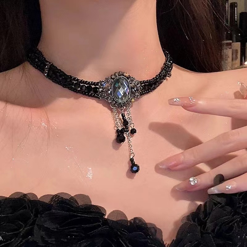 Fashion OL Collar Round Crystal Pendant Necklace Black Sexy Collarbone Chain Versatile Necklace Women's Necklace Jewelry