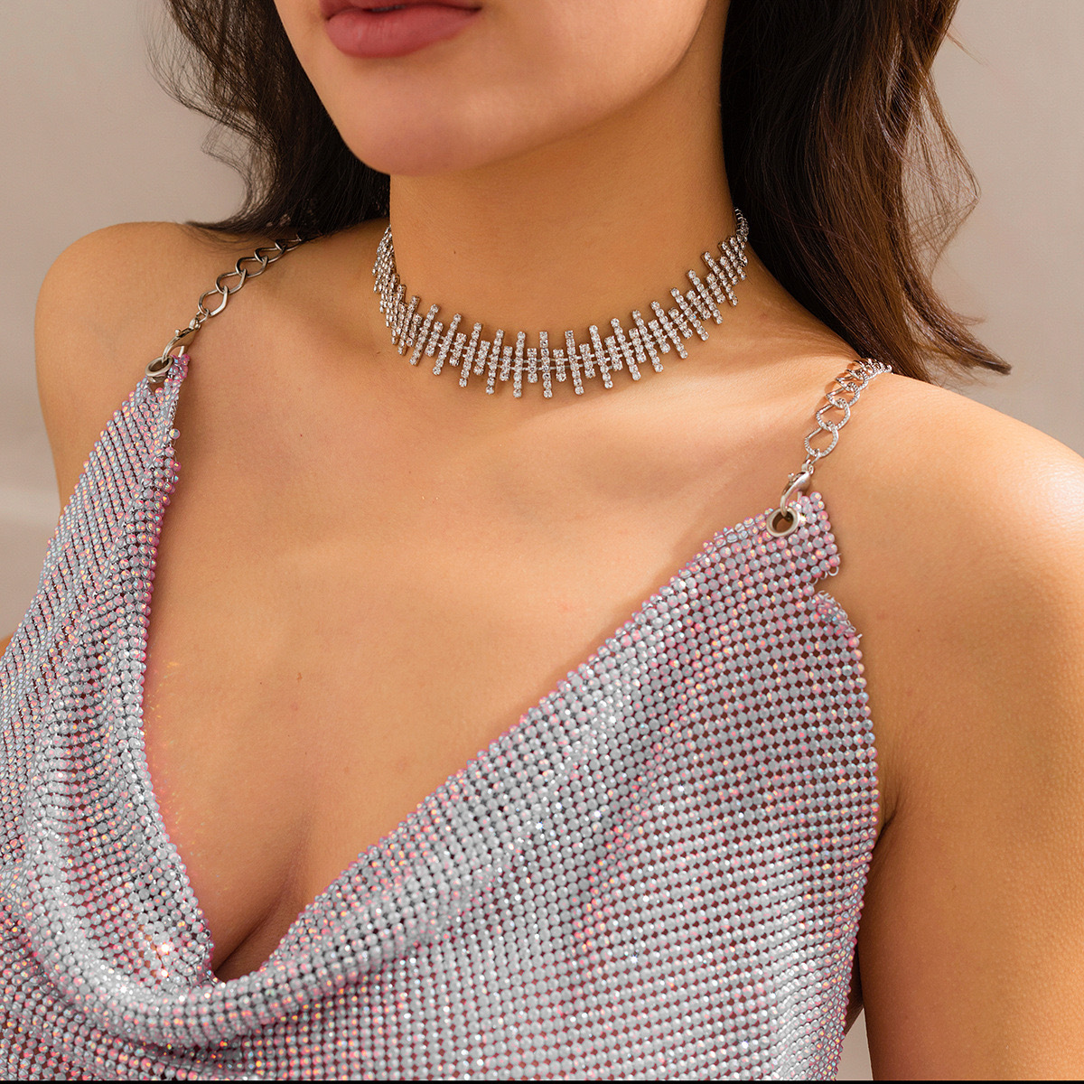 Super Flash Full Diamond Necklace Women's Sexy All-match Irregular Necklace Choker Internet-famous Same-style Niche Collarbone Chain Necklace