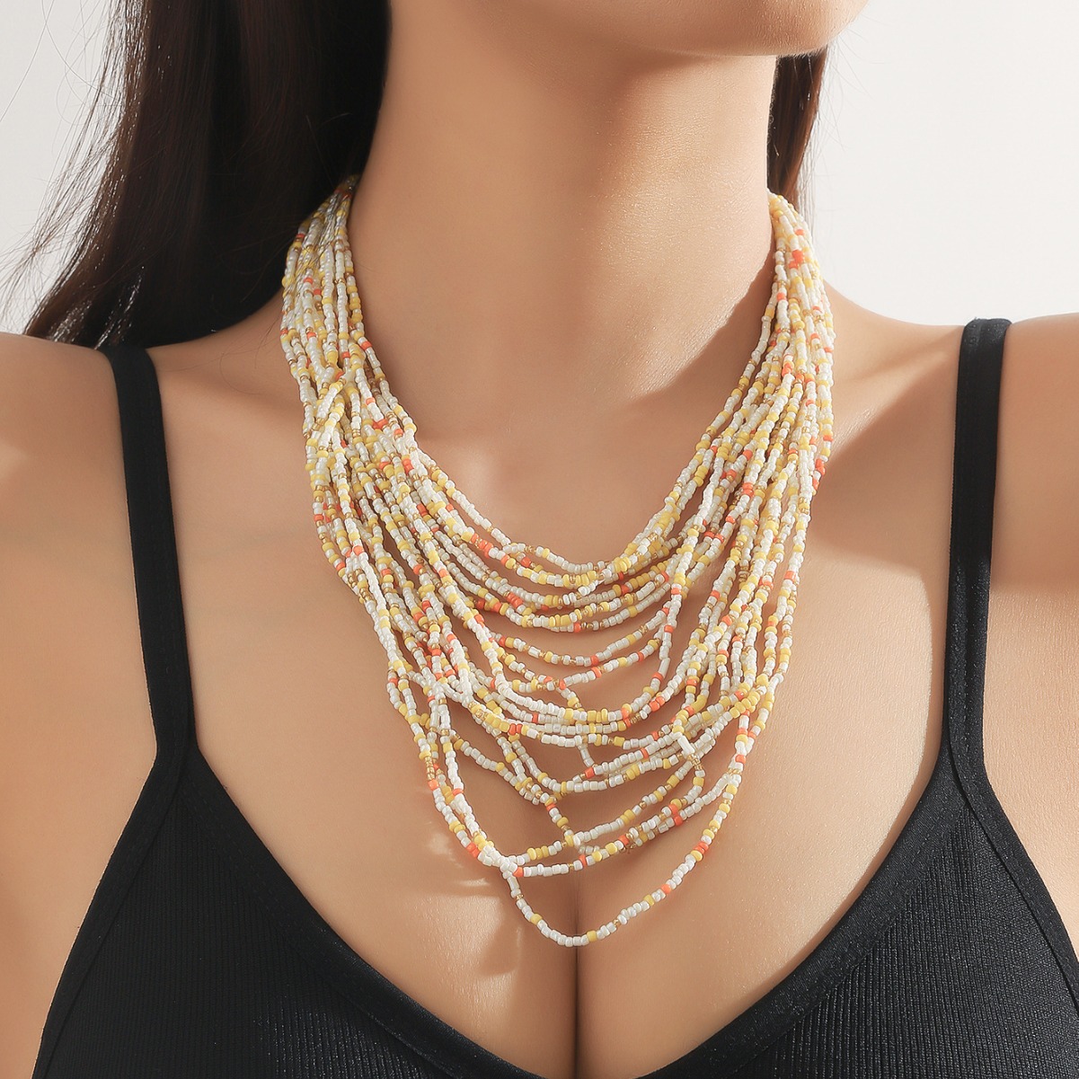 Amazon cross-border new bohemian style multi-layer rice beads sexy necklace European and American personality exaggerated beaded necklace